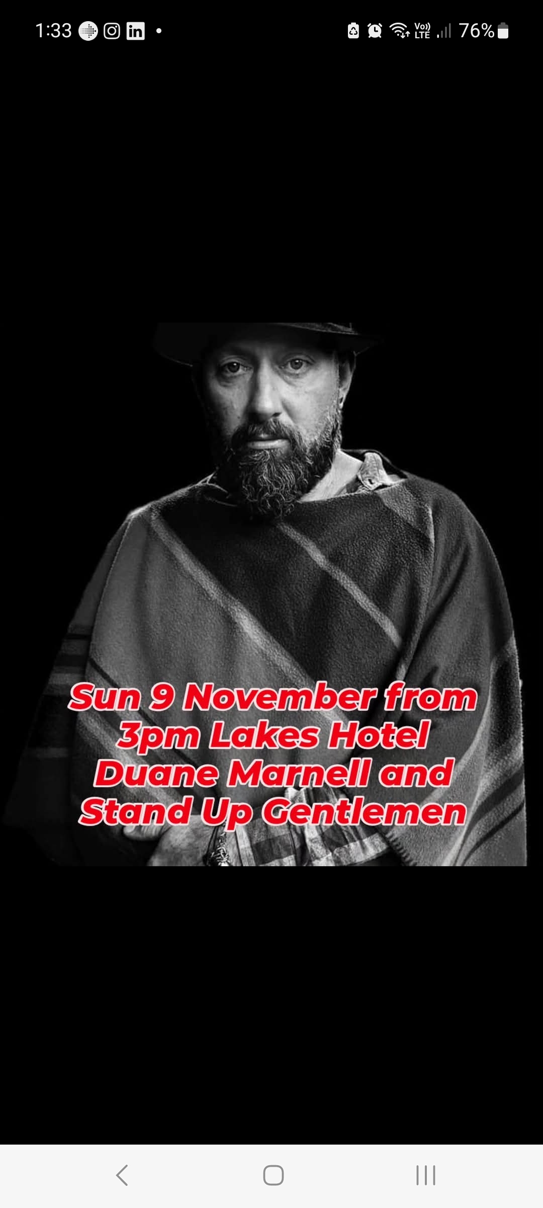 Stand up gentlemen are playing the Lakes Hotel from 3pm Sunday 9 November